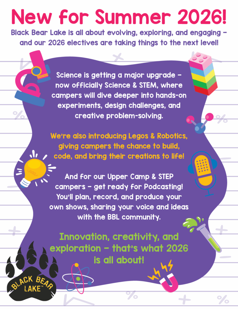 We’ve created a summer camp experience that promotes your child’s growth, allows them to choose their own schedule, explore new interests and make life long friendships at our 42 acre day camp while enjoying our picturesque 5 acre lake in Millstone Township, New Jersey.